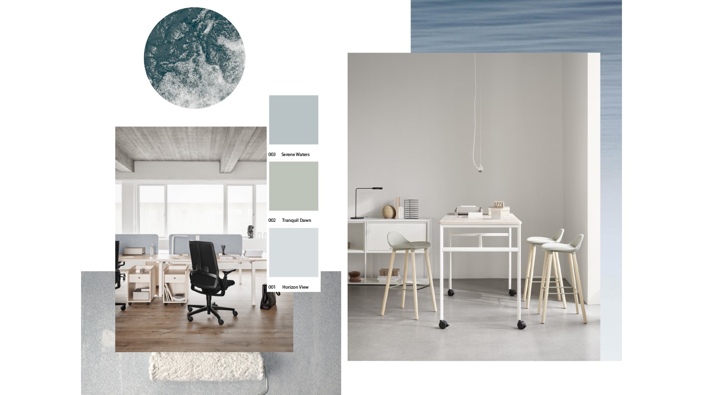 Colour can be a great tool for improving focus and boosting productivity. In fact, carefully selecting colours for a workspace can positively impact employee productivity, engagement, creativity, and happiness. However, colours with high contrast and excessive brightness can strain eyes over time, which can lead to discomfort and fatigue. As such, it is recommended that nature-inspired shades, such as calm colours like Tranquil Dawn and Horizon View or the soft blue Serene Waters, should be applied to surfaces that are to be viewed for extended periods. This is because nature-inspired tones typically have softer contrasts and lower brightness levels, which allow for a more visually comfortable working environment