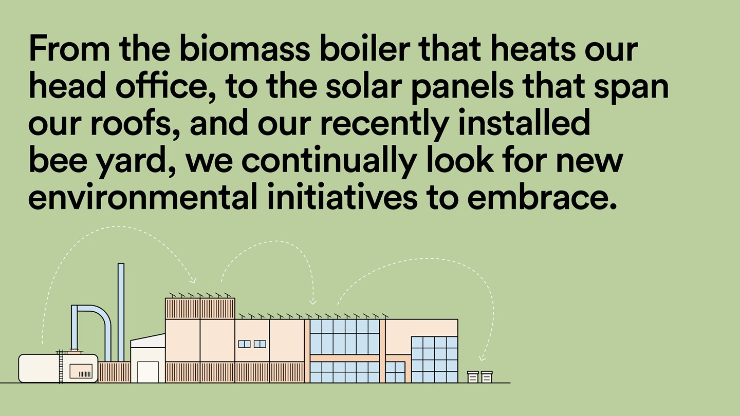 We have considered our impact on the environment for over four decades, from the installation of our first biomass boiler over 20 years ago, to our first recycling plant in 2017, to our recently installed solar panels.